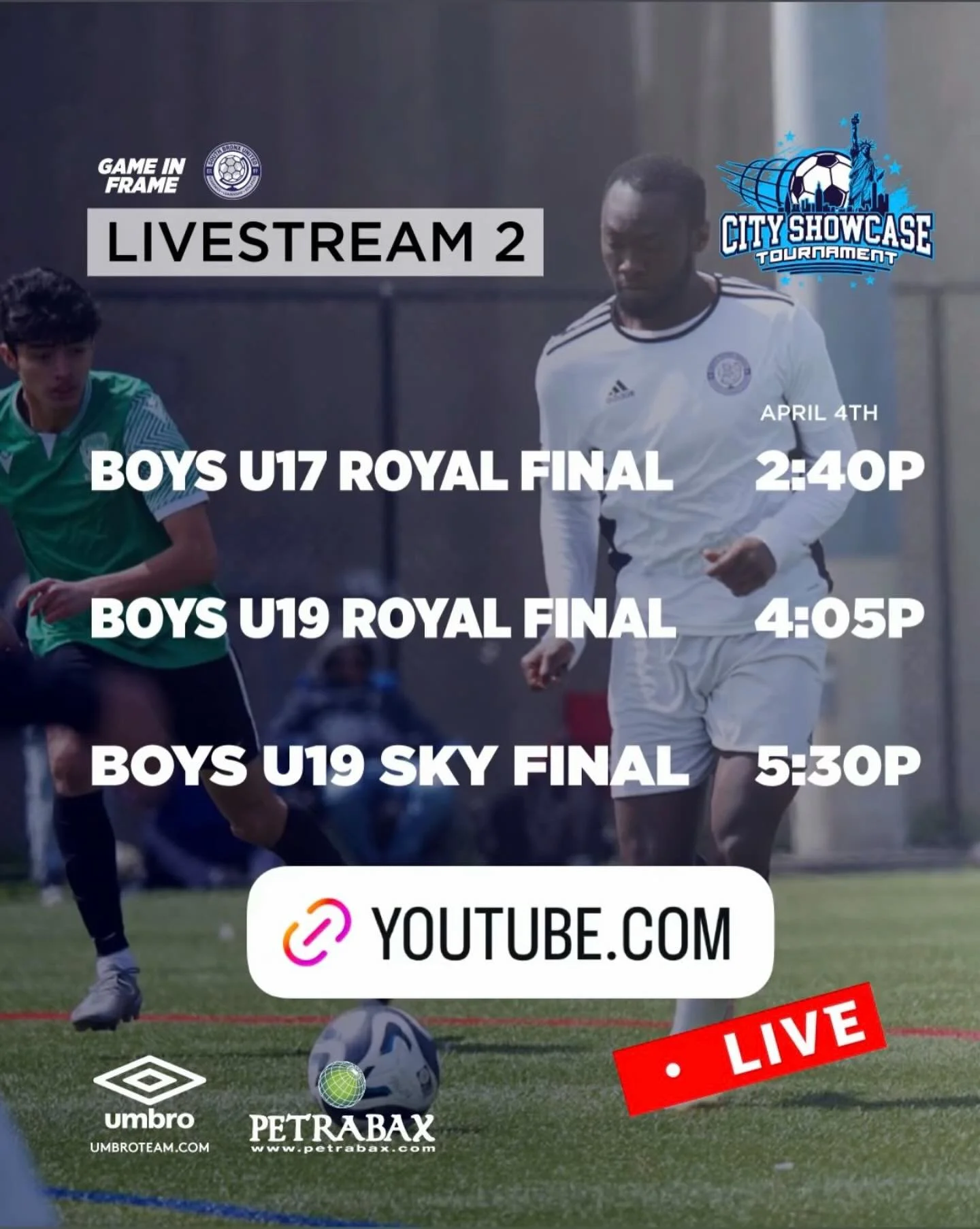 Watch the City Showcase Championship Matches for Under-17 and Under-19 (Girls and Boys)